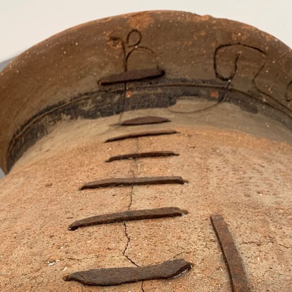 Pieza de barro remendada con lañas
